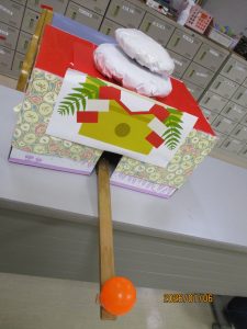 シーソーでみかんを飛ばして鏡餅にのせるゲームです。